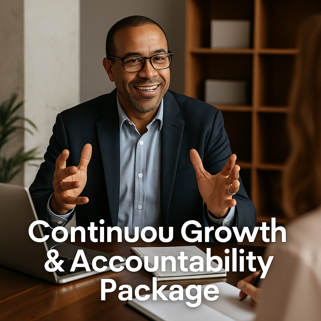 Growth doesn’t happen overnight—and it doesn’t stick without accountability. This package is designed for individuals who are ready to commit to consistent, intentional development across mindset, money, productivity, and purpose.